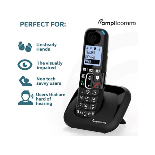 Amplicomms BigTel 1502 Cordless Big Button Phone for Elderly Duo | Black | ATL1423457