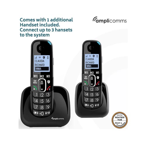 Additional Handset Included – The BigTel 1502 system comes with an additional handset, allowing a phone can be also placed by a bed or in another room to the main phone. Helping to reduce the chance of missing a call and meaning a phone is never too far away if needed.