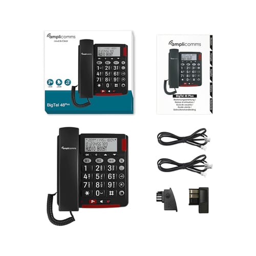 Thanks to its XL keypad size with big buttons to make easy dialling, two direct memory keys, big easy-to-access audio-boost and hands-free buttons with red lights, Amplicomms BigTel 48Plus is particularly suitable to assist people in search of an easy-to-read and easy-to-use product.