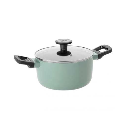 Choose for colour when cooking dinner and brighten up your kitchen instantly! The aluminium covered casserole is easy to handle thanks to it’s lightweight. The casserole is equipped with a high quality non-stick coating for easily food release and clean up, but provides you with the convenience of using little to no oil. The glass lid with stainless steel and venting hole ensures you of keeping an eye on the food while cooking. The matching colours of this sage and slate range allow you to combine the different pans in both colours.