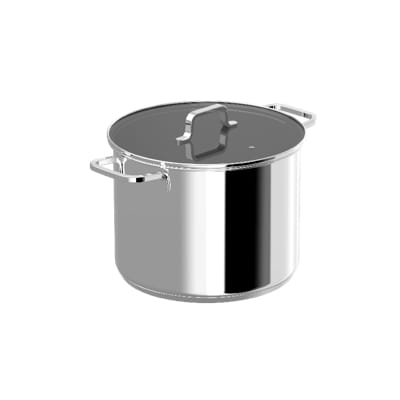 Cooking for a large group? Made from high-quality recycled stainless steel with a stylish satin finish, the 28x25cm covered stockpot features a capsule base that distributes heat quickly and evenly on any kind of cooktop, including induction. When you’re ready to cook, simply use the handy capacity markings to measure out the right quantities and place the clear glass lid with integrated steam vent on top to speed up the heating process and keep an eye on your food as it cooks.