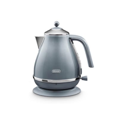 The De’Longhi Icona Metallics electric kettle delivers all the convenience you need in an attractive package. Easily fill to the desired level using the transparent water level indicator, and enjoy easy cleaning thanks to the removable anti-scale filter. The glossy azure finish of this kettle will add a tasteful splash of colour to your kitchen. Great ease of use thanks to the transparent water level indicator and convenient swivel base. Water capacity up to 1.7 litres. Add an exclusive touch of class to your kitchen with the Icona Metallics design. Glossy, metallic finish in stylish azure