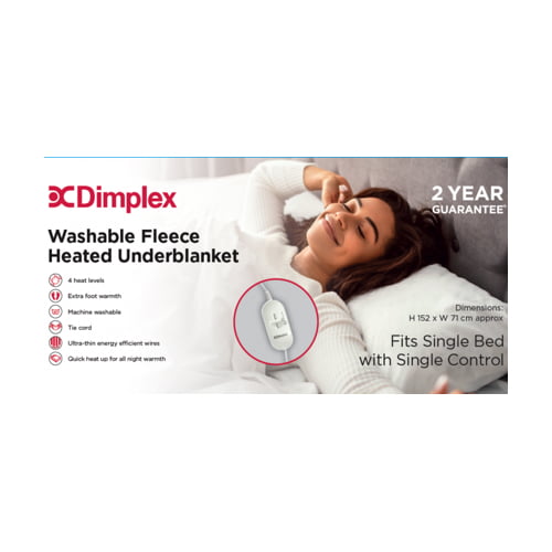 Enjoy a warm and comfortable sleep this winter with Dimplex Single Washable Fleece Heated Underblanket. With 4 heat levels, extra foot warmth and quick heat up, you can be sure that all your winter nights will be cozy and warm.