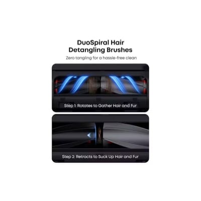 DuoSpiral Brushes prevent hair entanglement and reduce maintenance frequency. No mess, no stress, just a hassle-free cleaning experience.