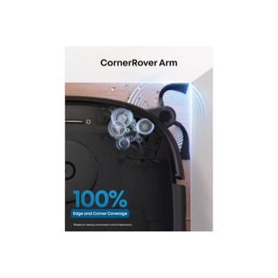 The CornerRover Arm tackles hard-to-reach areas like edges and corners. It increases overall cleaning coverage by 20%, and ensures 100% edge coverage for seamless cleaning. Note: Based on testing in eufy’s laboratory.