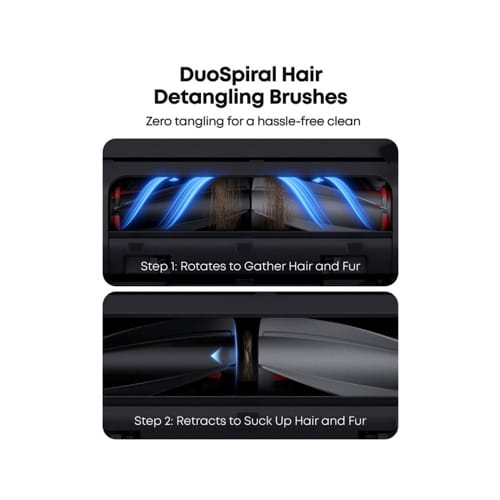 DuoSpiral Brushes prevent hair entanglement and reduce maintenance frequency. No mess, no stress, just a hassle-free cleaning experience.