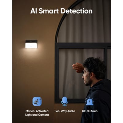 AI Smart Detection: The camera has a PIR sensor to detect motion 25 ft away and send you a real-time notification*. You can also use the eufy Security app to speak to people via two-way audio, sound the 105 dB siren, and activate bright lights to scare away intruders, wherever you are.
