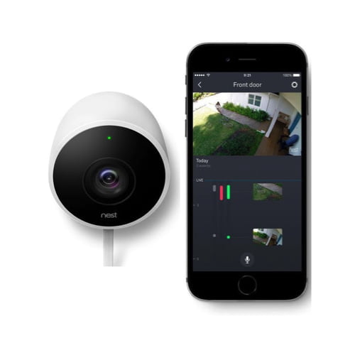 Nest Cam Outdoor helps you look after your home 24/7, rain or shine. It plugs into the mains powersupply so that you never have to worry about dead batteries, alerts your phone when there’s activity,and lets you listen in and talk back from the Nest app. When you subscribe to Nest Aware, you also get24/7 continuous recording and person alerts, so you’ll know straight away if someone’s there.