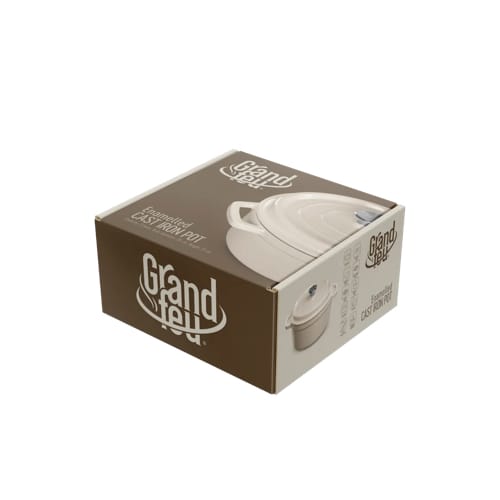 Stylish, minimalist design white Grandfeu, 3.5 l, with a lid – a guarantee of longevity and durability. The body of the pot is made of cast iron, the outer side is covered with glossy enamel, the inside is covered with matte enamel. A matte enamel layer protects the inner surface from rust and at the same time ensures that the cooked food does not stick to the edges. The pot has wide handles, so it is easy to pick up with gloves. The pot heats up slowly, but keeps the heat stable for up to 4 hours. It also withstands extremely high temperatures up to 450 degrees. The most delicious porridges, soups, sauces, stews are prepared in these pots. Also perfect for baking bread or flatbread.
