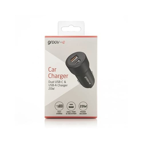 Groov-e 20W Dual USB-C & USB-C Car Charger | GV-MA124-BK