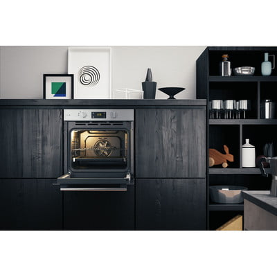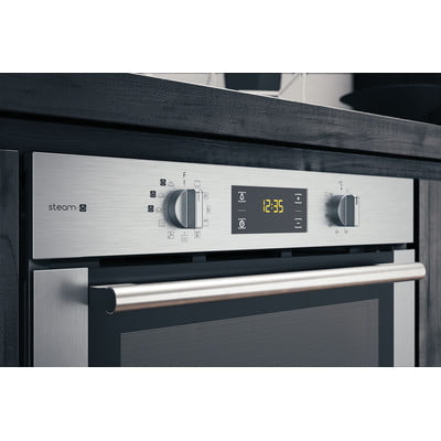 Simple to use and Clean stainless steel lines, this single oven from Hotpoint combines Gentle Steam and powerful fan cooking to achieve perfect results by selecting one of the three gentle steam programmes: Fish, Bread and Poultry (meat). Steam maintains the nutrients of your food, simply pour water into the cavity of the oven and follow the handy cooking chart inside the glass. If you prefer Manual Dial Controls with a Clear Digital Display look no further and you can program the oven to stop after the cooking time is over! All this, combining with Multiflow Technology which ensures you reach perfectly even cooking results by distributing heat evenly throughout the cavity, all while preserving the goodness of your food for a healthy, nutritious meal.