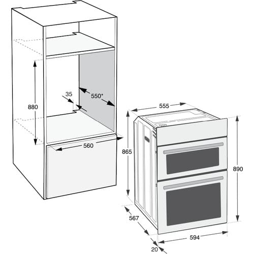- Easy to use dials for both ovens