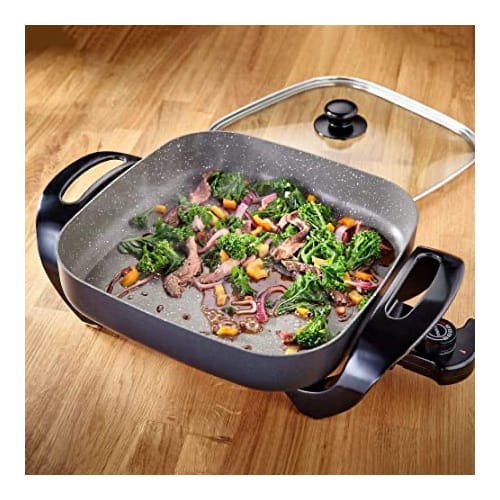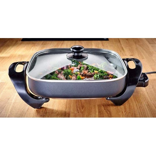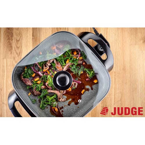 The Judge Electric Skillet is a powerful and versatile multicooker. With simple one-button operation you can fry, roast, grill, casserole and steam then clean up fast thanks to the non-stick coating. Pull out the plug to serve at the table and keep food warm with the vented glass lid.