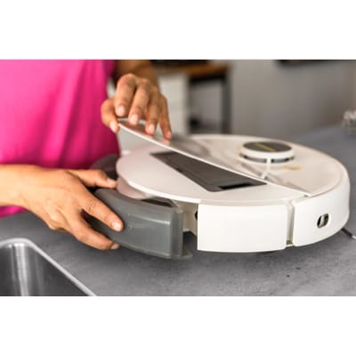 For even better cleaning results, the RCV 5 can also damp mop. If needed, use the wiping unit with microfibre cloth, fill the fresh water tank and you are ready to go. The RCV 5 cleaning robot can either be used for dry cleaning only, for wet mopping only, or with both options together in combined cleaning mode.