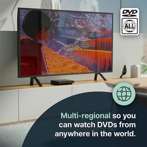 The DVD player offers multi-regional functionality so you can enjoy DVDs from anywhere in the world as well as a whole host of features such as USB and CD playback.