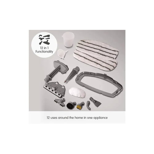 The 12-in-1 Steam Cleaner does exactly what it says – offers you multiple uses in one appliance. From floors to hobs, upholstery to windows, the 12-in-1 Steam Cleaner gives you the ability to clean all of the following, without purchasing multiple appliances: Hard floors, carpets, work surfaces, shower doors, tiles, grouting, ovens, hobs, BBQs, upholstery, taps, sanitary ware.