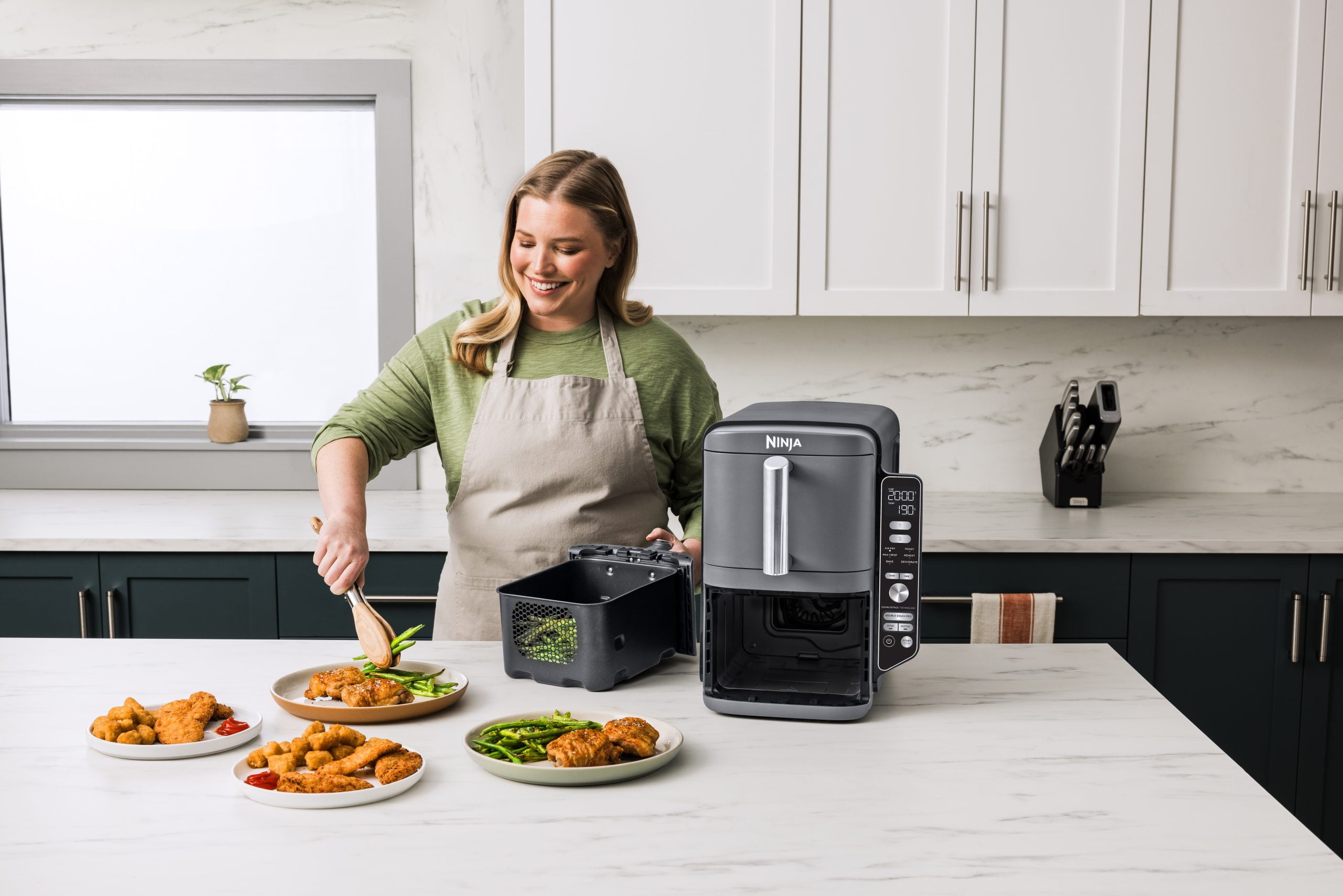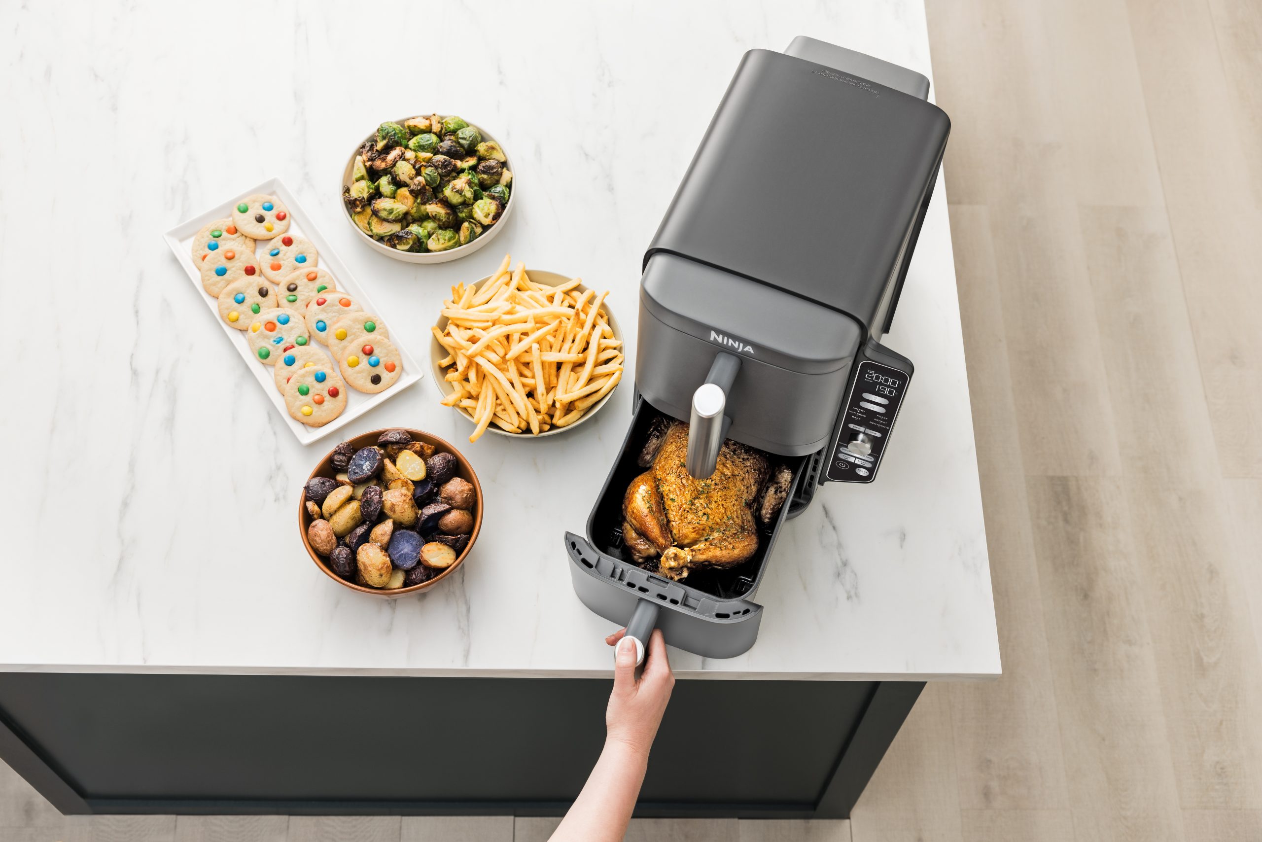 TAKE AIR FRYING TO NEW HEIGHTS WITH THE NEW NINJA DOUBLE STACK. SPACE SAVING DESIGN, 2 STACKING DRAWERS , IDEAL FOR SMALL KITCHENS. PERFECT!