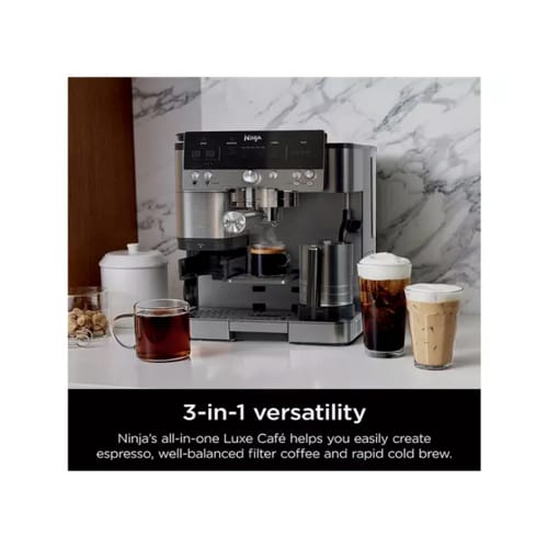 Meet Luxe Café Premier, the bean-to-cup Ninja coffee machine that helps you make barista-quality drinks in minutes. This versatile 3-in-1 espresso, cold brew and filter coffee machine takes the guesswork out of coffee and includes a built-in grinder for extra convenience.