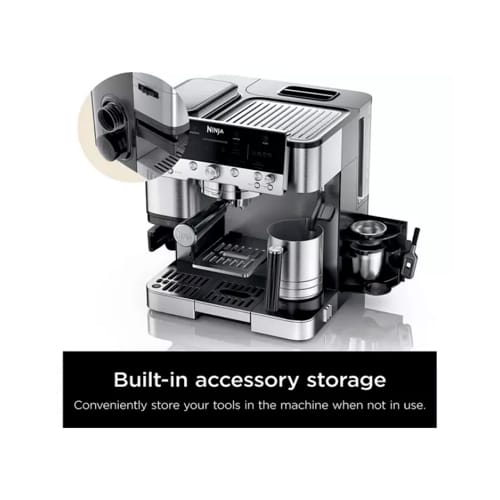 Store the funnel and tamper on the left side of the machine, while the baskets and cleaning accessories can be stored on the right compartment. The portafilter also slots neatly into the group head.
