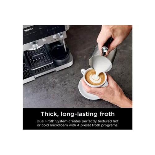Leave milk frothing to the experts. Enjoy perfectly textured and long-lasting dairy and plant-based froth, without the faff. Ninja’s Dual Froth System combines the ideal amount of steam and whisking within the stainless steel jug using a removeable whisk.