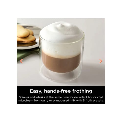Automated Dual Froth System Leave milk frothing to the experts. Enjoy perfectly textured and long-lasting dairy and plant-based froth, without the faff. Ninja’s Dual Froth System combines the ideal amount of steam and whisking within the stainless steel jug using a removeable whisk. Enjoy five froth presets: Steamed Milk, Thin Froth, Thick Froth, Extra-Thick Froth and Cold Froth. Simply give the steam wand a quick wipe after use. And there’s no need to clean the inside of the wand. The integrated auto purge setting does it for you, preventing build-up and residue so it’s always ready for your next brew.