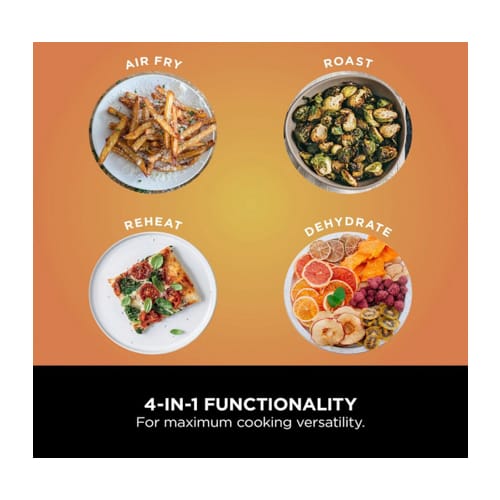 Whether you’re new to air frying or ready to upgrade, this compact air fryer is the perfect choice. It’s easy to use with digital controls and 4 versatile cooking functions: