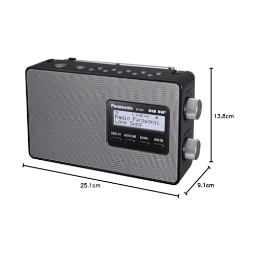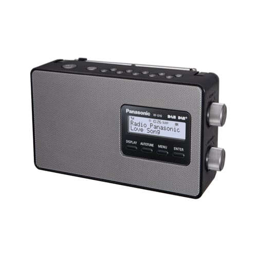 The Panasonic RF-D10 Portable DAB/FM Radio With presets. It can be operated by power cable or battery and the inbuilt handle enables easy portability, so you can make use of the 33Hour battery life when using DAB and 24-hour battery life when using FM. The RF-D10 has a large display screen (74mm x 21mm) with a dot matrix display and LCD screen with white backlight.