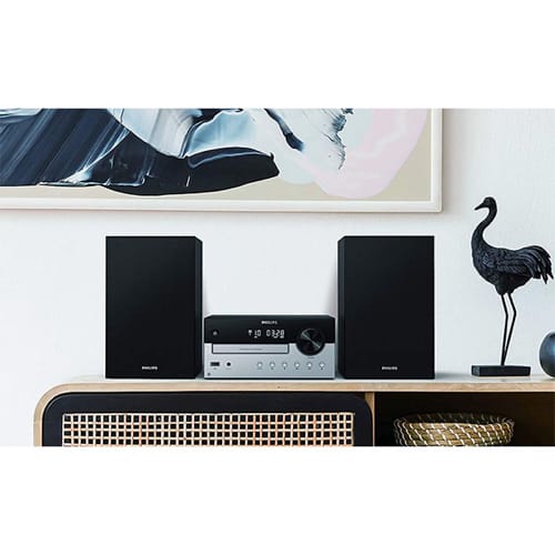 This music system with Bluetooth Philips TAM4205/12 can play your favourite music thanks to its FM radio, CD player, USB and Bluetooth. Hear new details from your playlist and podcasts or rediscover your CD collection. The bookshelf-style loudspeakers fill your room with clear sound and powerful bass thanks to their 60 W output power and the combination of woofer, tweeter and bass-reflex ports.