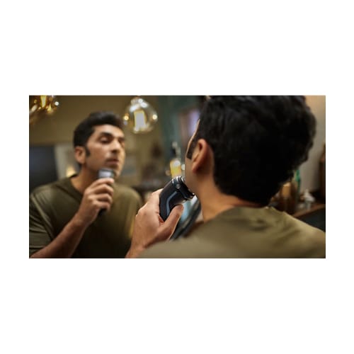 By flexing and pivoting in five directions, the head follows every curve of your face, cutting just above skin level for a clean, comfortable shave even on sensitive skin.