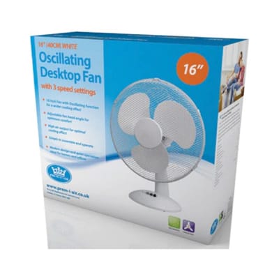 Premiair 16″ Oscillating Desktop Fan | White | EH1798