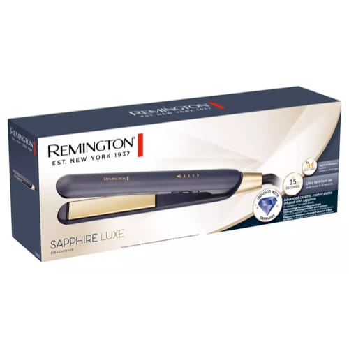 Add a touch of luxury to your styling routine with the Remington Sapphire Luxe Hair Straightener. Designed with a decadent deep blue finish with champagne accents, it has sapphire infused advanced ceramic coated plates that leave hair 2X smoother* for sleek results. A digital temperature control with five handy settings allows you to select the right temperature for your hair type. *Vs standard ceramic coating.
