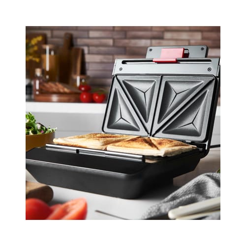 Make up to two toasted sandwiches at the same time! The plates cut and seal the sandwiches as you close the lid, whilst a secure locking clip helps to continuously seal the sandwiches throughout the toasting process.