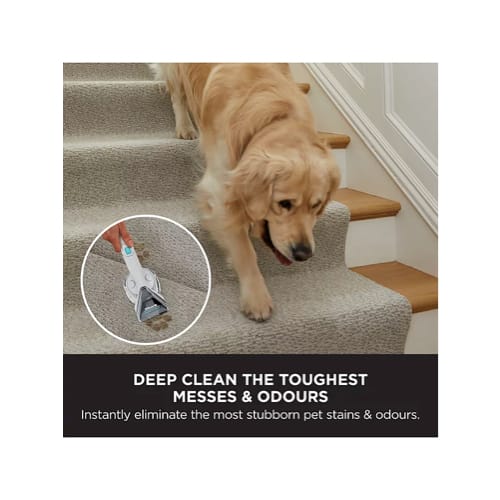 Instantly eliminate tough stains anywhere in your home with the built-in StainStriker spot cleaner, for the best stubborn stain removal**. With a long-reach and interchangeable attachments, it’s perfect for tackling stains on pet beds, rugs, carpets, stairs, sofas, upholstery, car interiors and more.