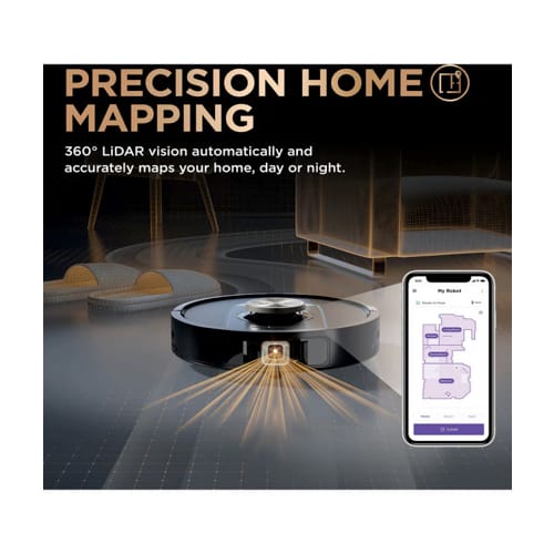 Precision home mapping: 360° LiDAR vision quickly and accurately maps every inch of your home so your robot can methodically clean, detecting and avoiding objects in its path, day or night, adapting to everyday changes in the home.