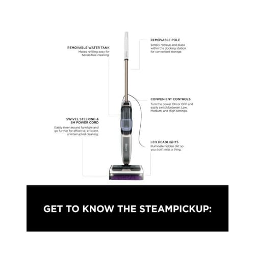 Shark SteamPickUp Hard Floor Cleaner offers chemical-free cleaning, removing 99.9% of household germs and bacteria using steam alone.