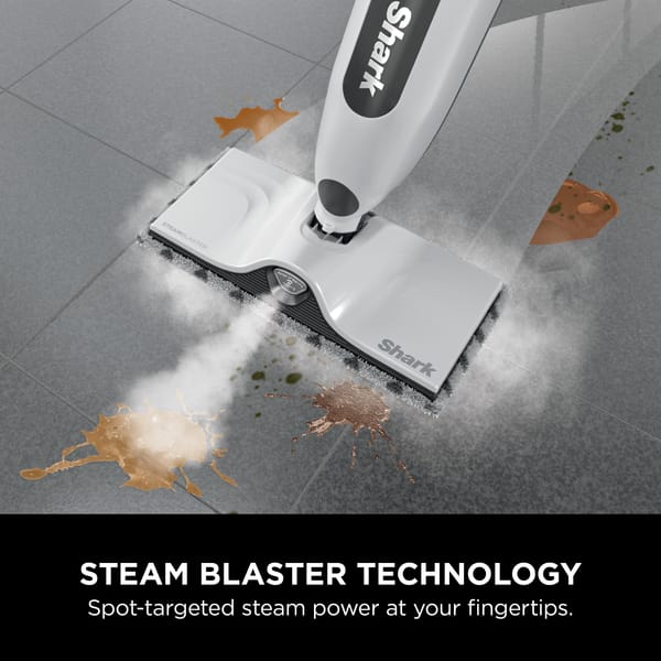 Introducing the Shark SteamSpot with SteamBlaster Technology. Tackle tough messes, using water alone, with a targeted blast of steam – right at your fingertips.