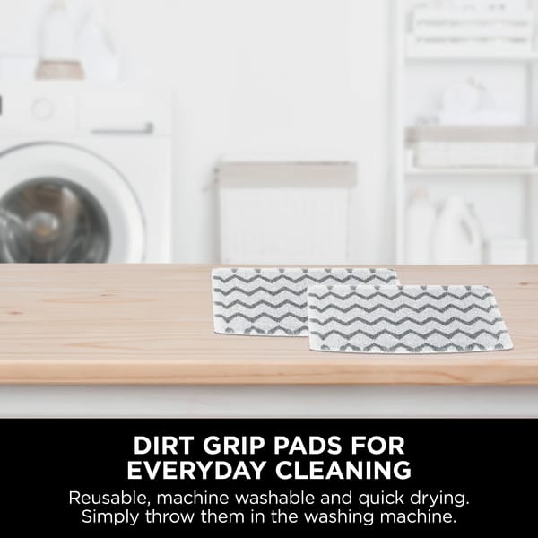 Washable Dirt Grip Pads: Forget the cost and hassle of disposable floor wipes. Shark’s Dirt Grip Soft Scrub cleaning pads are machine washable, reusable, and made from absorbent, quick-dry microfiber fabric.