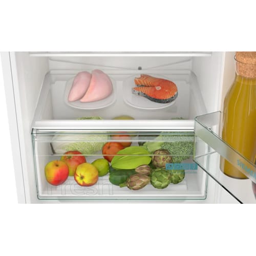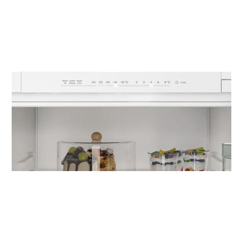 Now you can see all the items in your fridge in the best light. The built-in, energy-saving LED light provides even lighting throughout the fridge to keep all items in view, so you can see everything you have at a glance.As the LEDs are located at the front, they cannot be obstructed by items at the front. If your appliance features Home Connect, you can also switch the LED light on and off, or adjust its brightness, via your Home Connect app.
