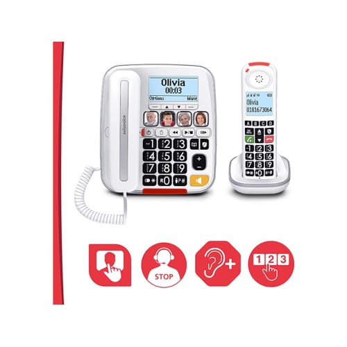 The Xtra 3355 Combo is the successful combination of a corded telephone and a cordless handset.